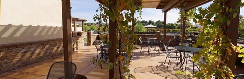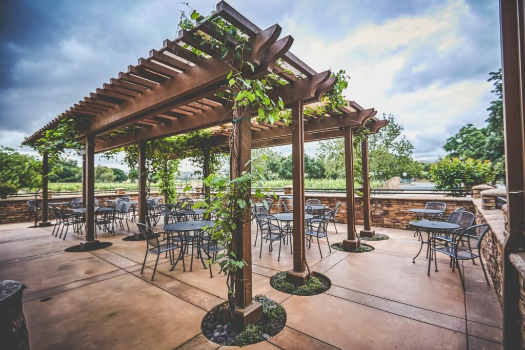 Our two outdoor patios, the smaller private patio for our members and larger main patio open to everyone, offer patio tables & seating, an ideal spot to a enjoy a wine flight or wine by the bottle, a picnic while taking in the idyllic wine country views.